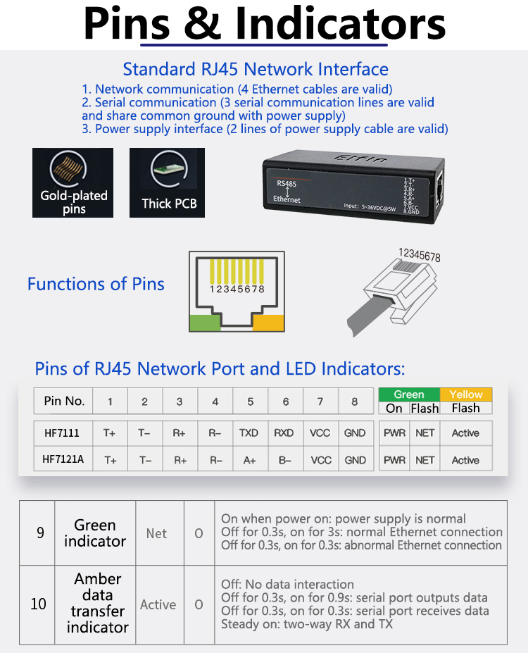 HF7121A Serial Server RS485 to Ethernet Modbus Gateway to TCP with Ethernet Cable and Bracket
