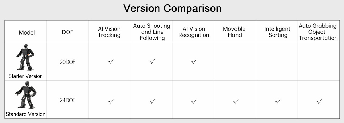 * DOF: 20DOF (Starter Version); 24DOF (Standard Version)
