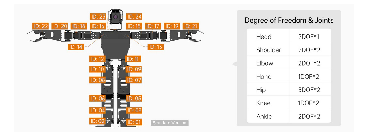 features up to 24 degrees of freedom (DOF), enabling the robot to