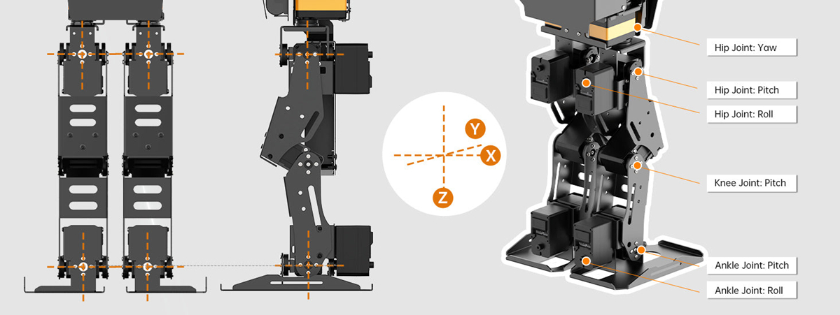 rotation of the legs on the X-axis, Y-axis, and Z-axis, making the robot