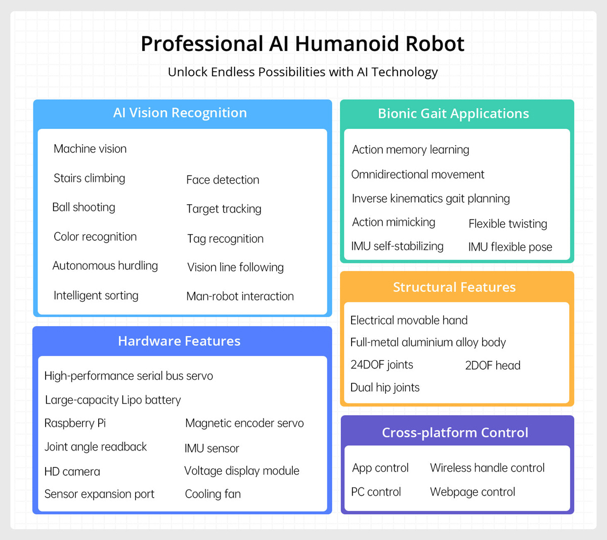equipped with intelligent high-voltage bus servos. It is programmed in