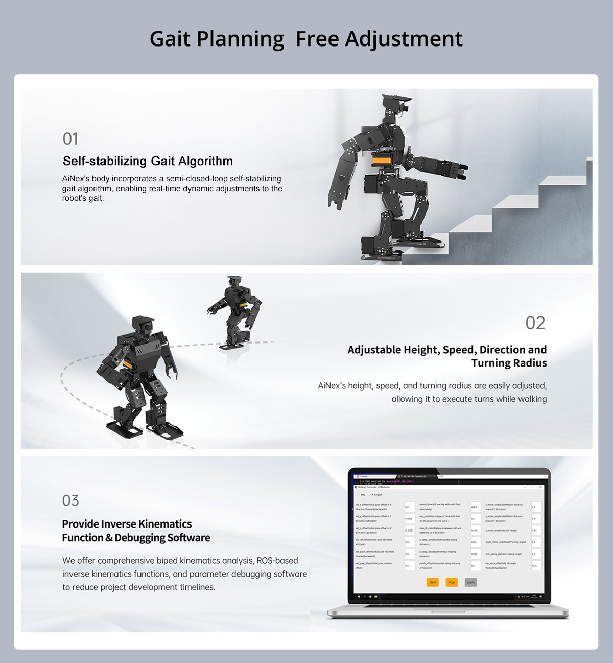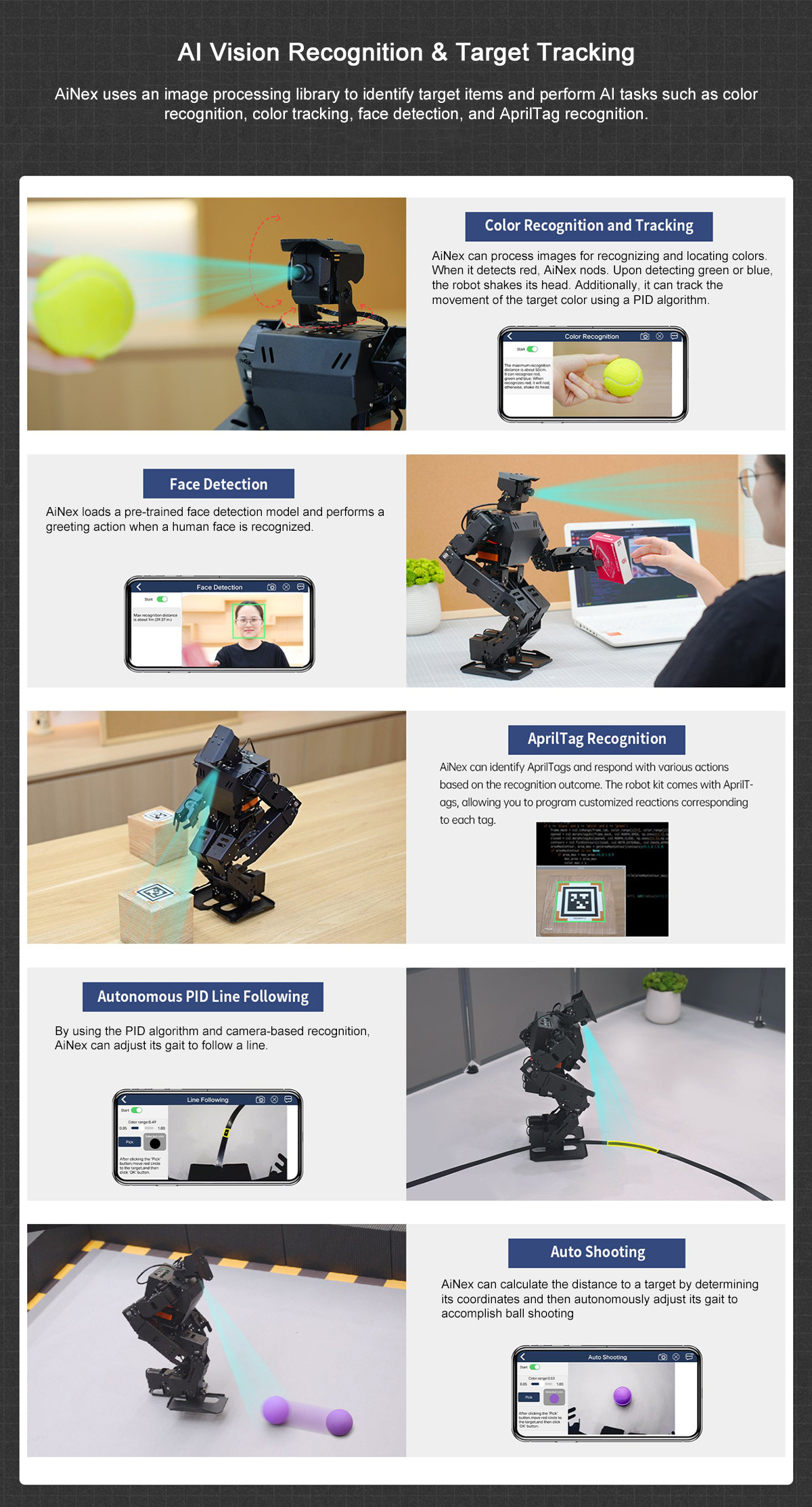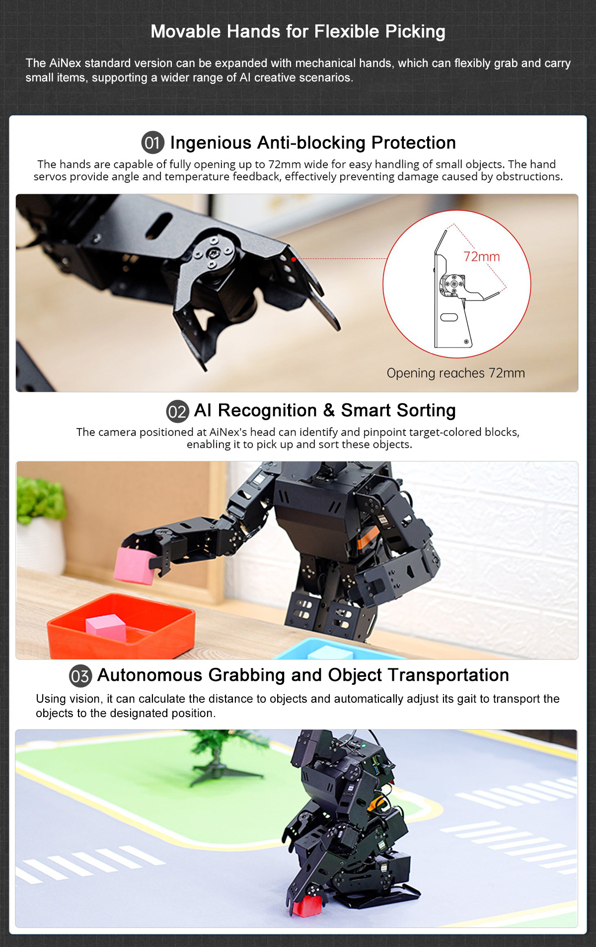 AiNex excels in walking, climbing, hurdling, gripping, and performing