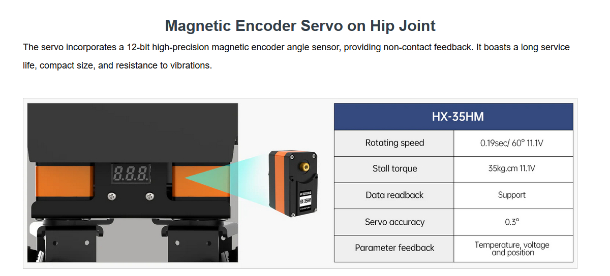 turning. The hip joint is equipped with a magnetic encoder bus servo,