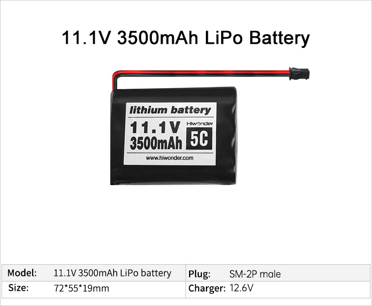 * Power Supply: 11.1V 3500mAh 5C LiPo battery