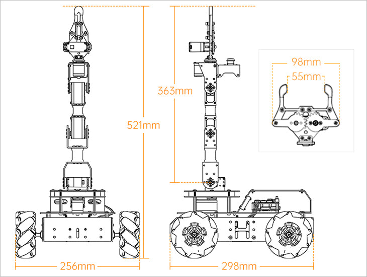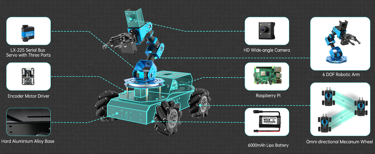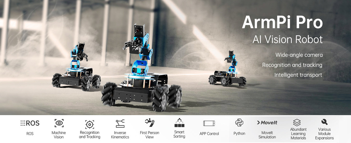 omni-directional Mecanum wheels, ArmPi Pro can move 360°. Multiple