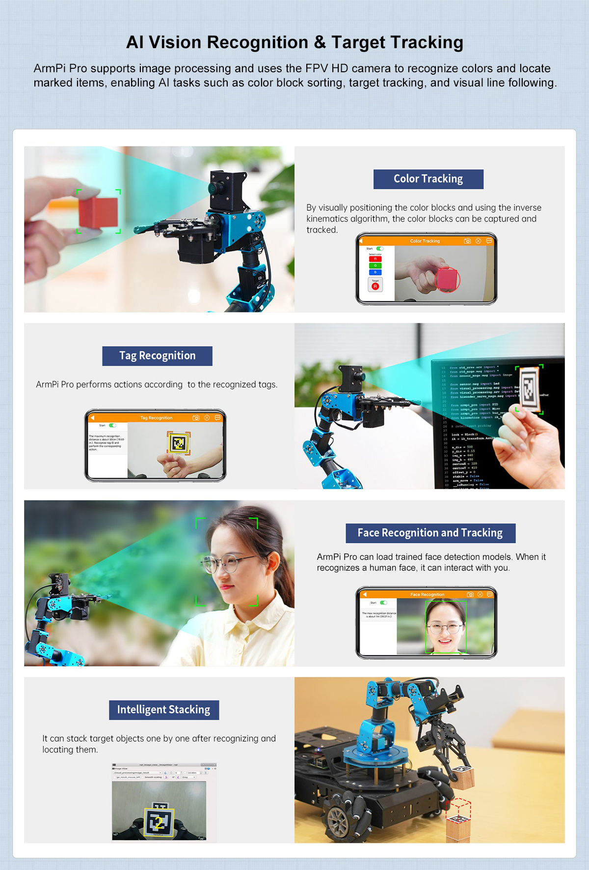 programmed with Python. Building on the original ArmPi FPV vision
