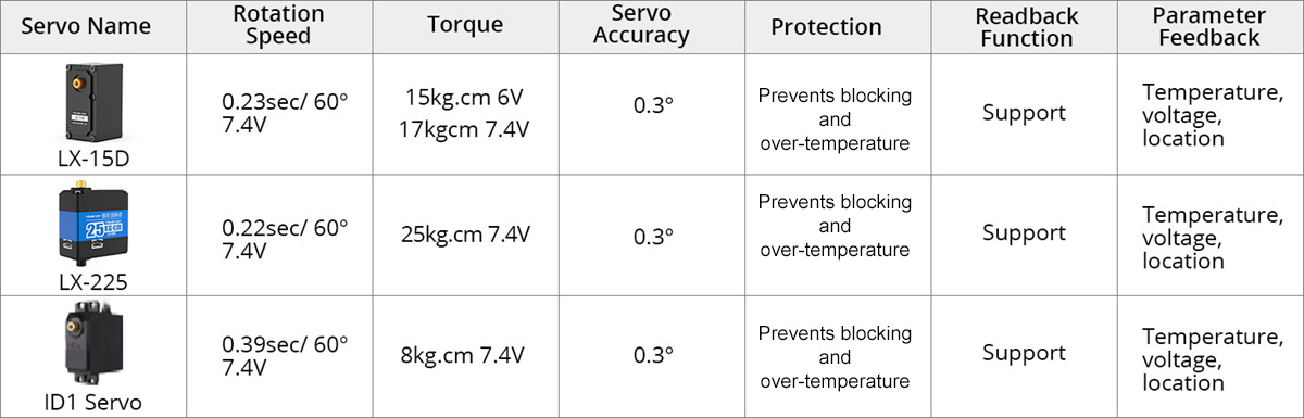 * It offers voltage and position feedback with increased torque. Built-in anti-blocking algorithm extends servo lifespan.