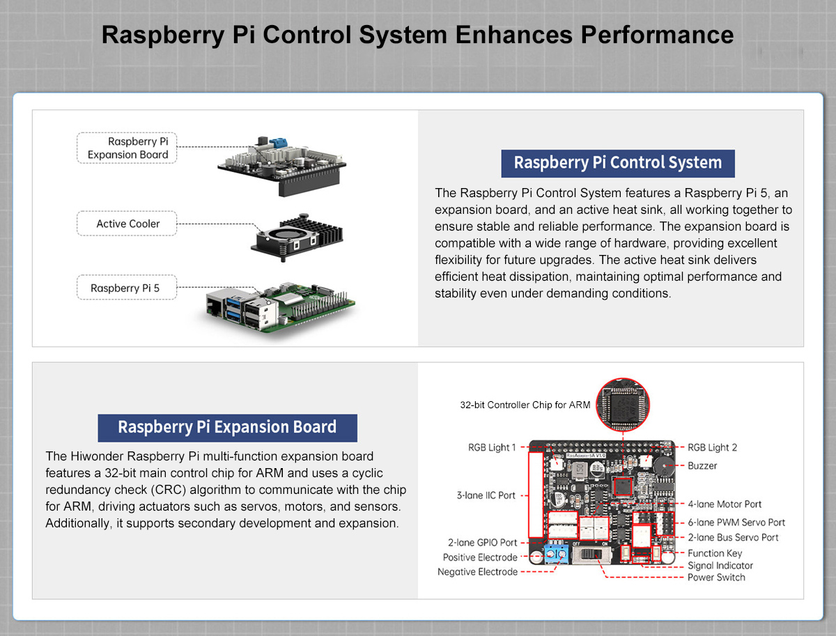 operating system, controlled by Raspberry Pi 5 or Raspberry Pi 4B, and