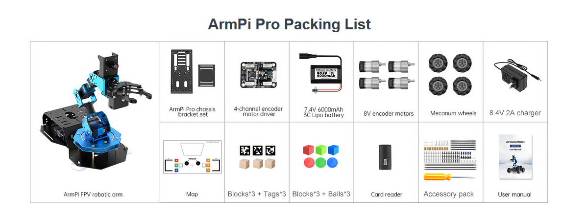 included, along with the full set of ArmPi FPV Robotic Arm Standard