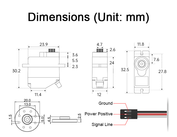 * The servo supports a maximum torque of 1.8kg. When the load exceeds 1.8kg, the clutch protection is automatically triggered to ensure normal operation.