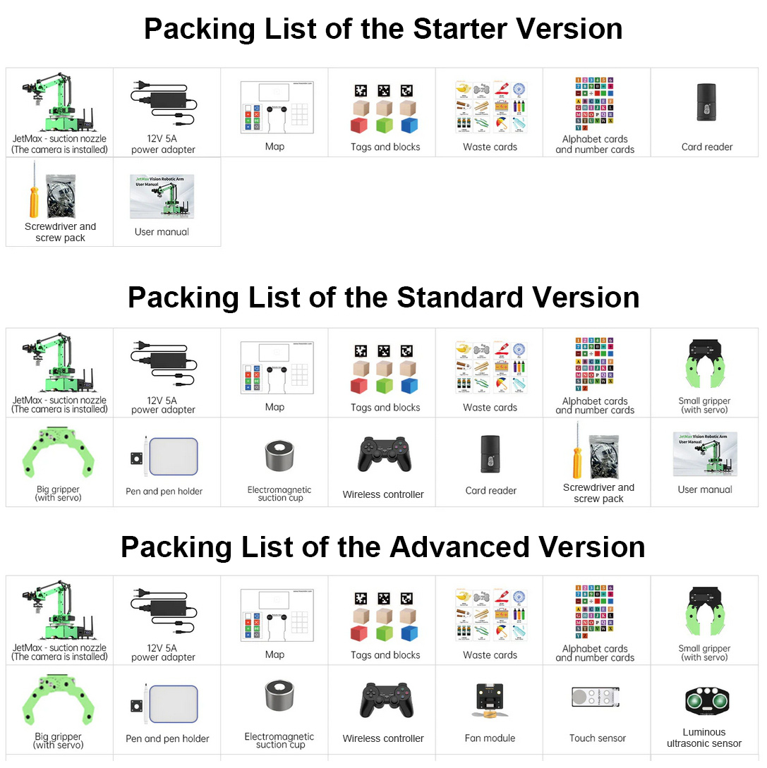 * Advanced Version: With grippers and wireless controller; includes electronic module expansion pack and supports voice interaction