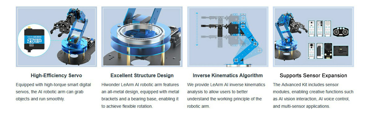Hiwonder LeArm 6DOF AI Robotic Arm Advanced Version with More Sensors & AI Interaction Expansion Kit