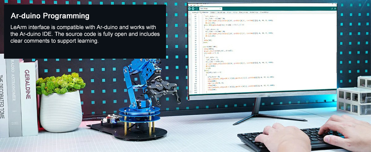 4. Comprehensive learning materials are provided, including source code, inverse kinematics solutions, schematic diagrams, 3D models, and live video tutorials.