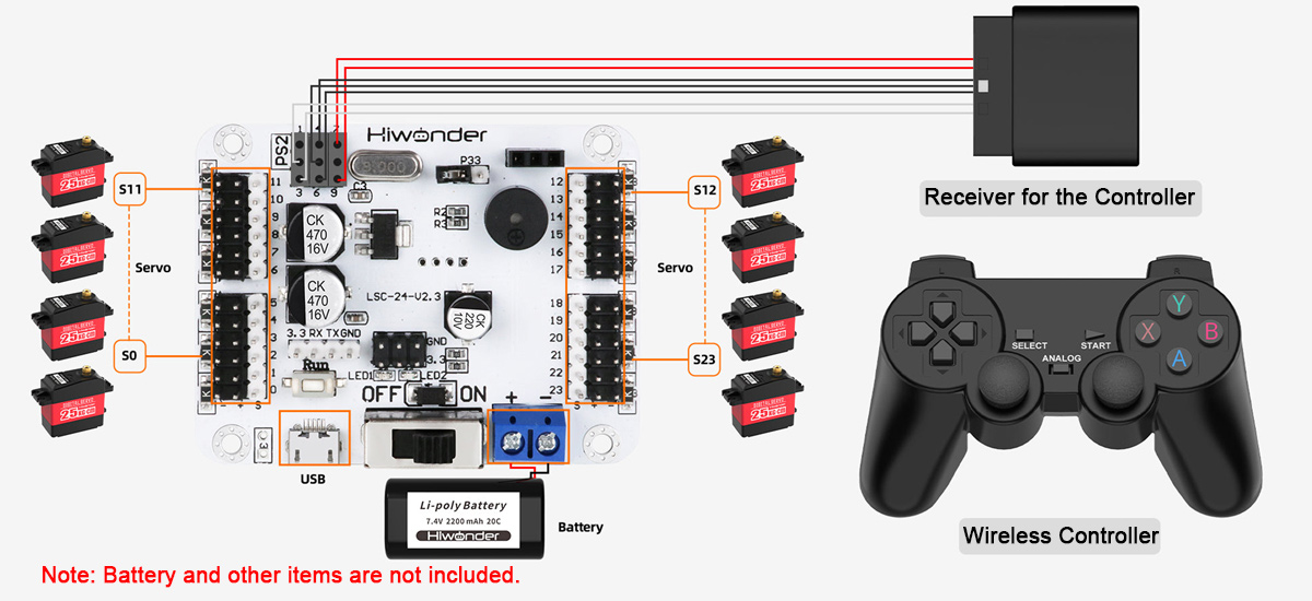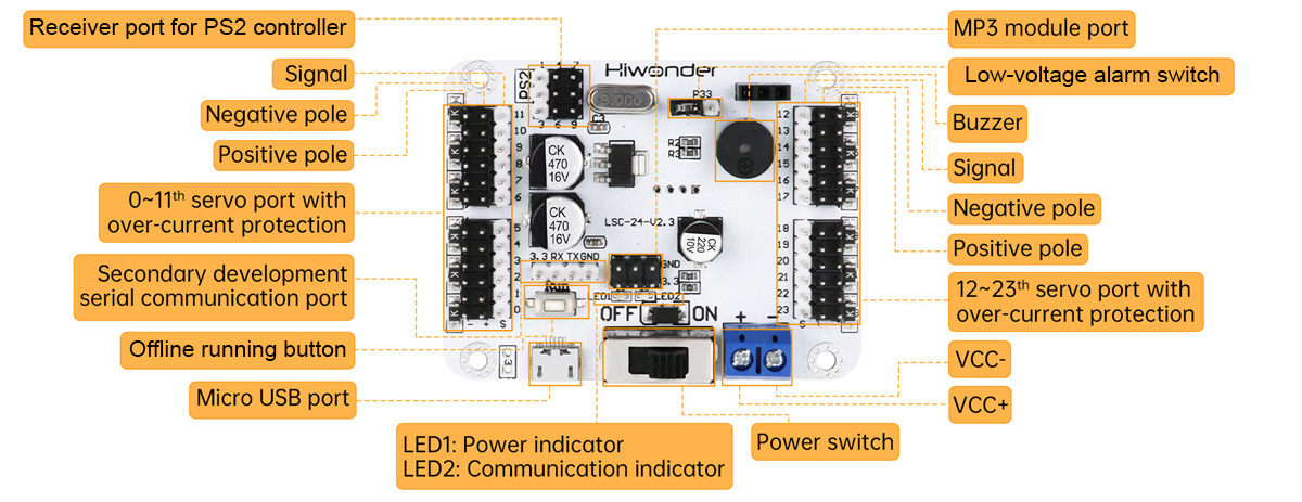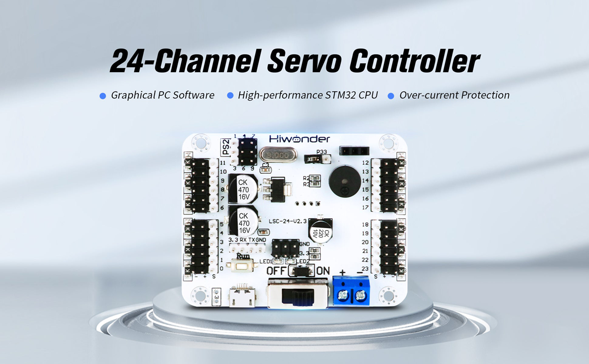 Hiwonder LSC-24 24-Channel Servo Controller Board Kit for PS2 Controller, Bluetooth, and MP3 Modules