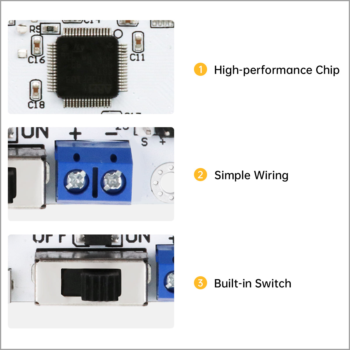 2. Simple Wiring: The controller features built-in positive and negative power interfaces, making wiring simple and operation easy.