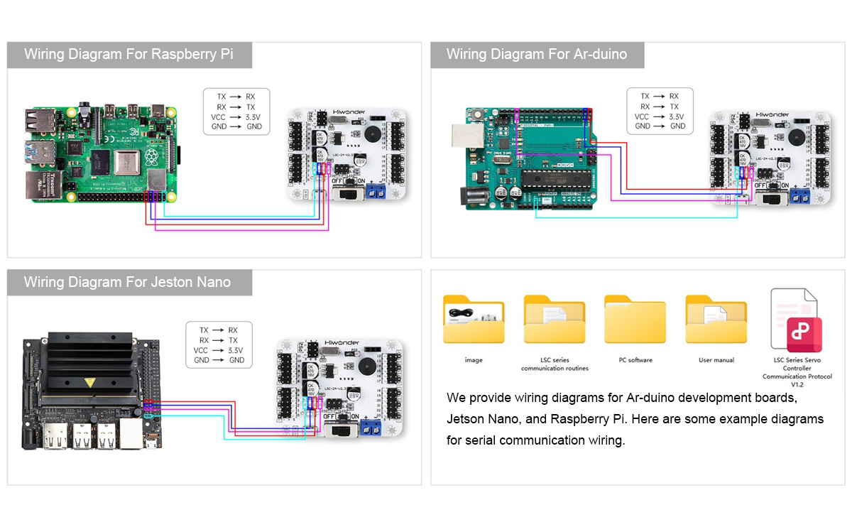 * We provide three communication routines for Ar-duino, Raspberry Pi, and Jetson Nano as references to facilitate your learning.