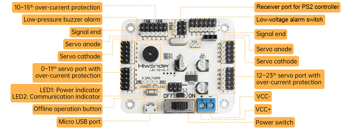 Hiwonder LSC-32 32-Channel Servo Controller Board Mainboard for PS2 Controller Robots & Robotic Arms