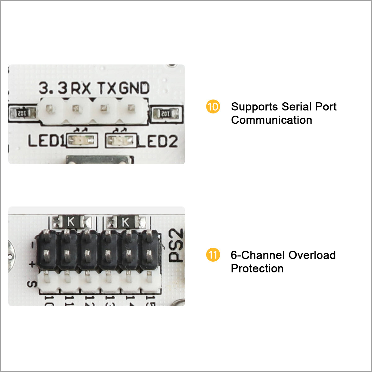 11. Six-Channel Overload Protection: Equipped with 6-channel overload protection, greatly reducing the risk of servo stalling and burnout.