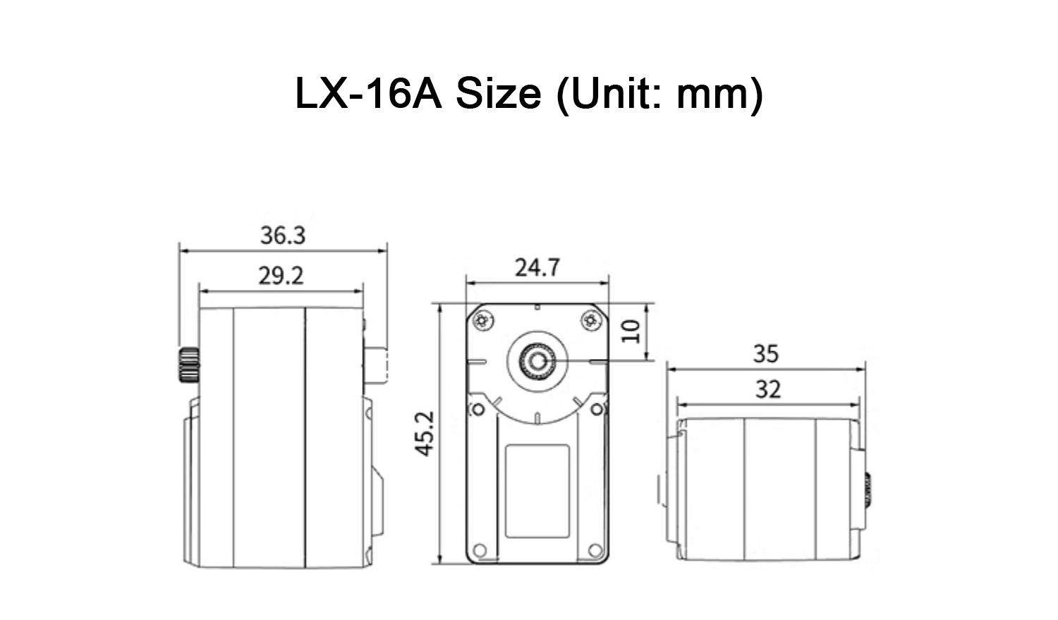 * Compared with other serial bus servos on the market, LX-16A features a low-profile, compact design. The compact structure allows for more delicate and highly bionic robot designs.