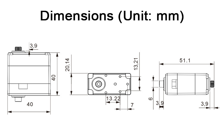 * Equipped with Metal Gears and High Torque Design: With metal gears and high-performance motor, the servo torque can reach 20kg·cm.