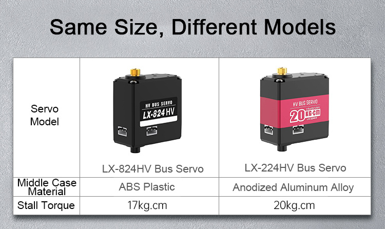 Hiwonder LX-224HV 20kg·cm Three-Port HV Bus Servo Boasts Anodized Aluminum Alloy Middle Case