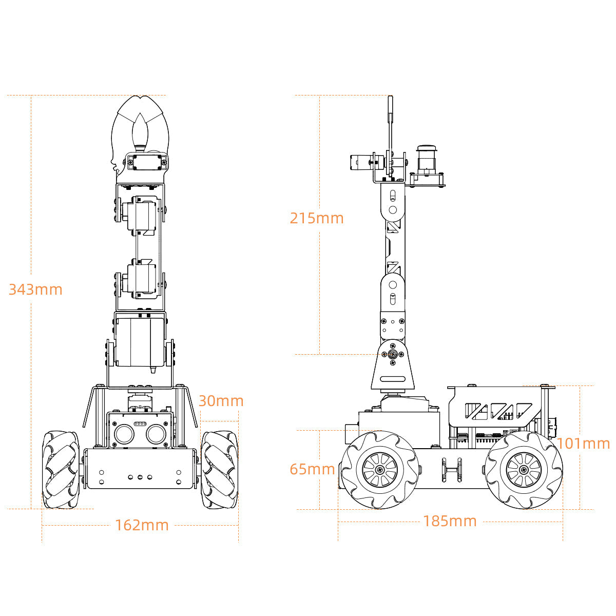 * 4 × Orange Mecanum wheels