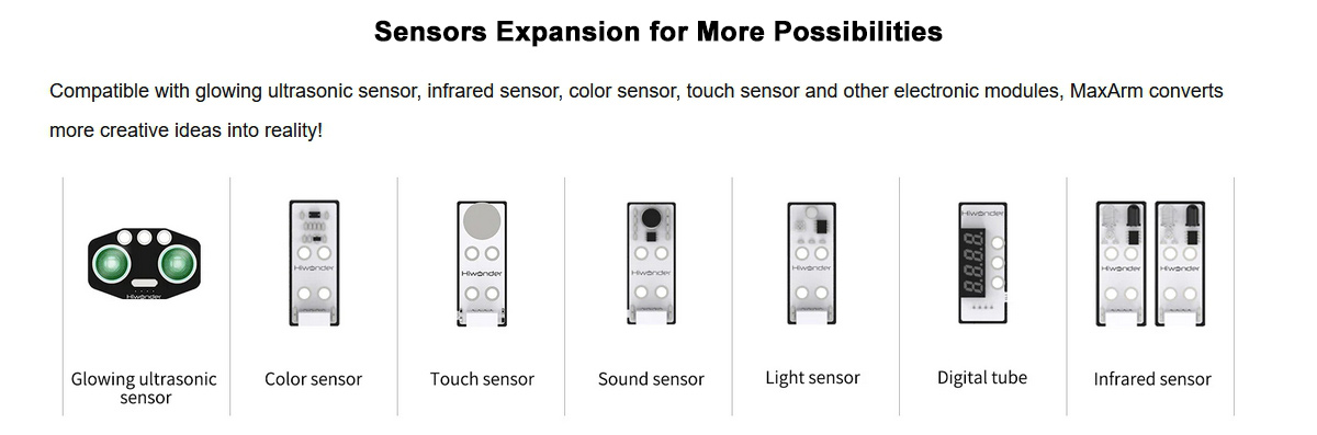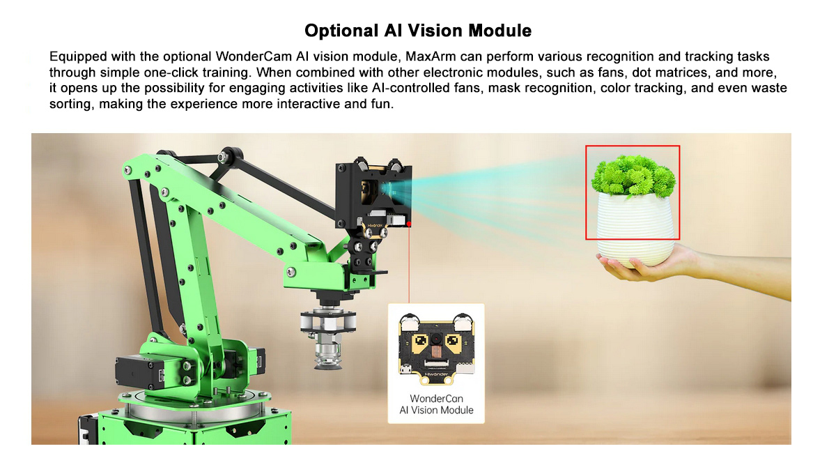This robotic arm also supports multiple sensors, enabling you to bring your creative AI ideas to life!