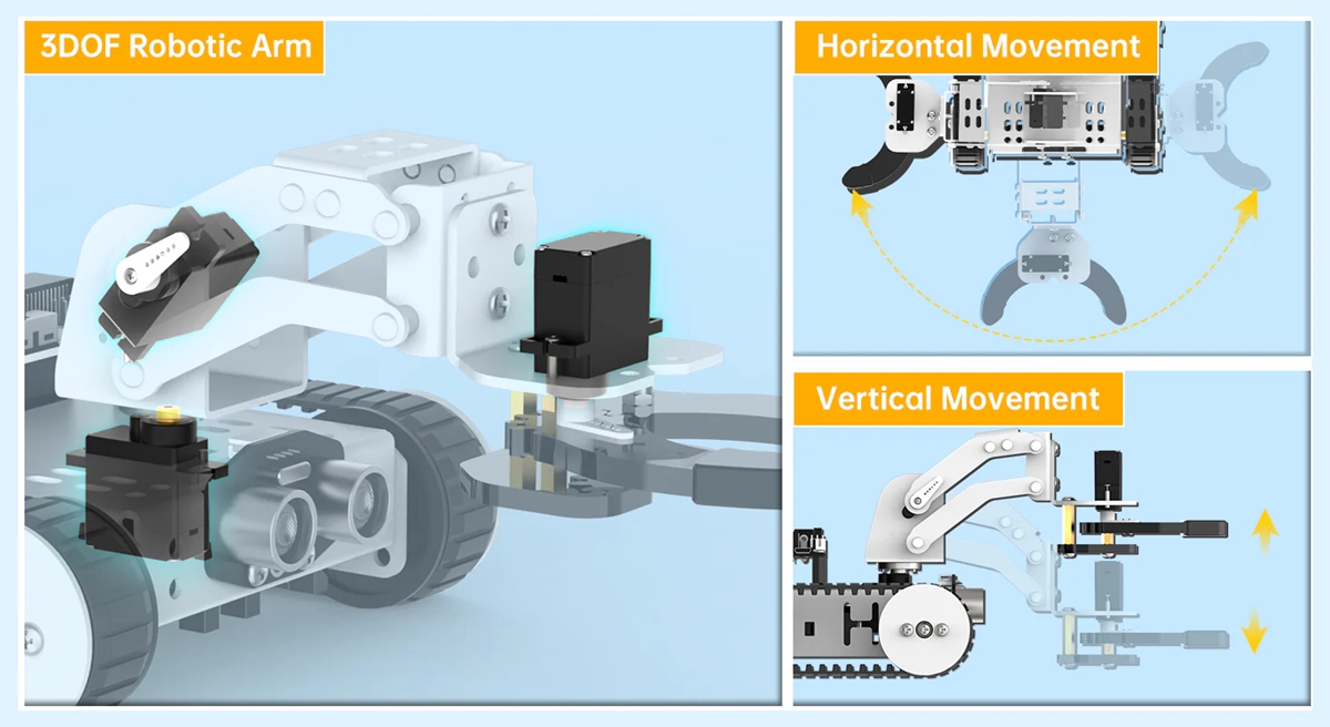 * Three anti-blocking servos prevent damage from blockage or collision, greatly extending the service life of the robot.