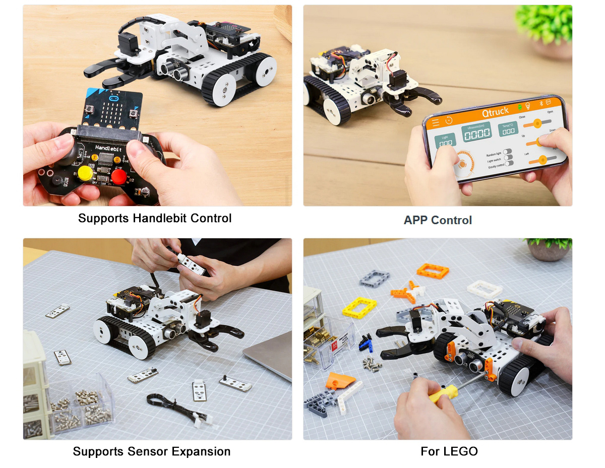 1. Qtruck is an educational robot based on micro:bit programming and supports four transformable configurations.