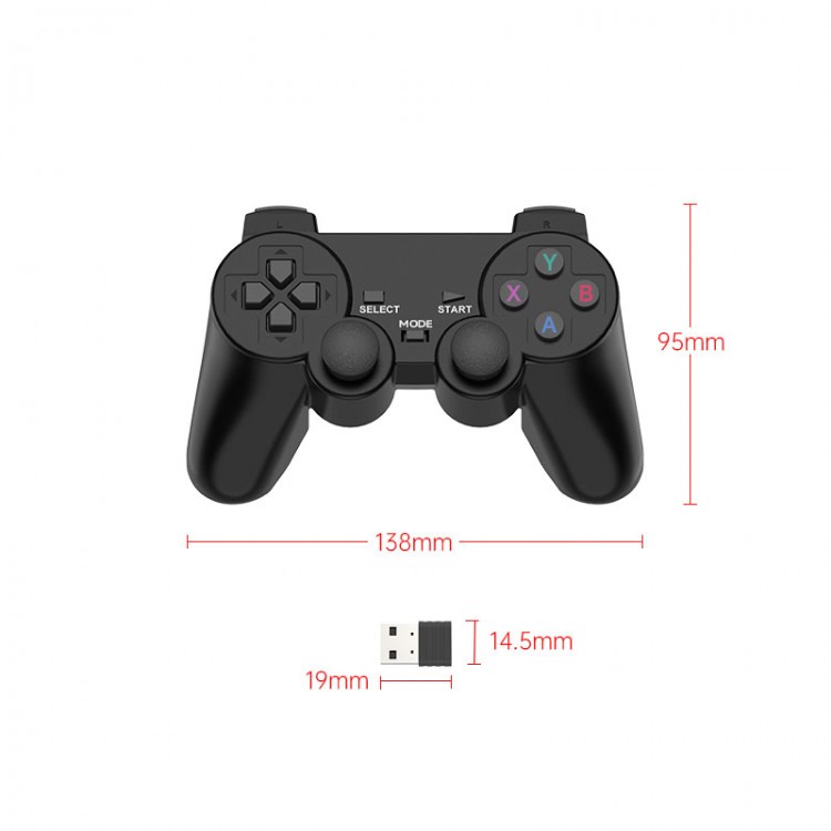 * The wireless gamepad enters sleep mode after 30s without pairing.