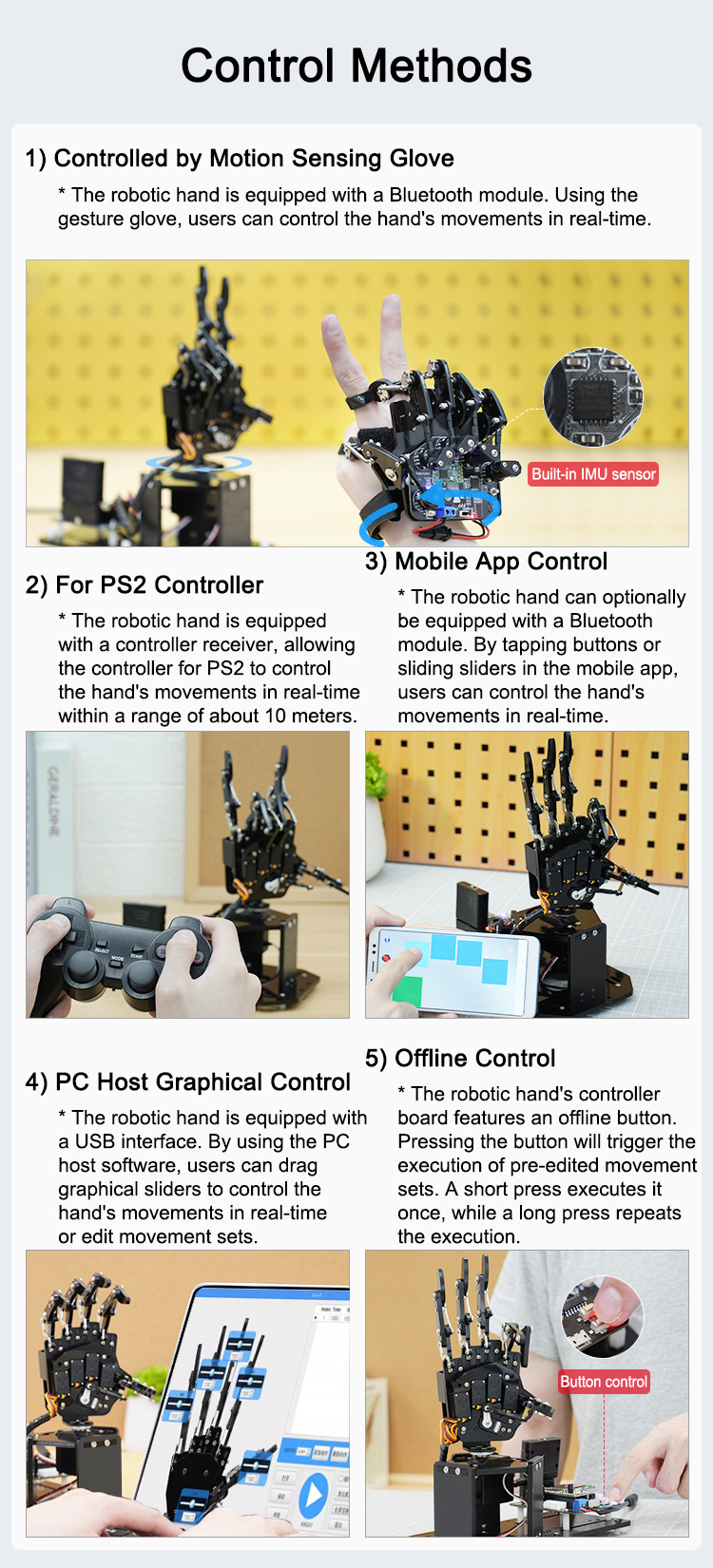 * Control Methods: PC Host, Control via Controller for PS2, Mobile Control, Gesture Glove Control (sold separately)