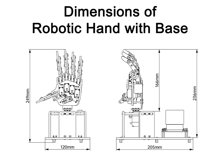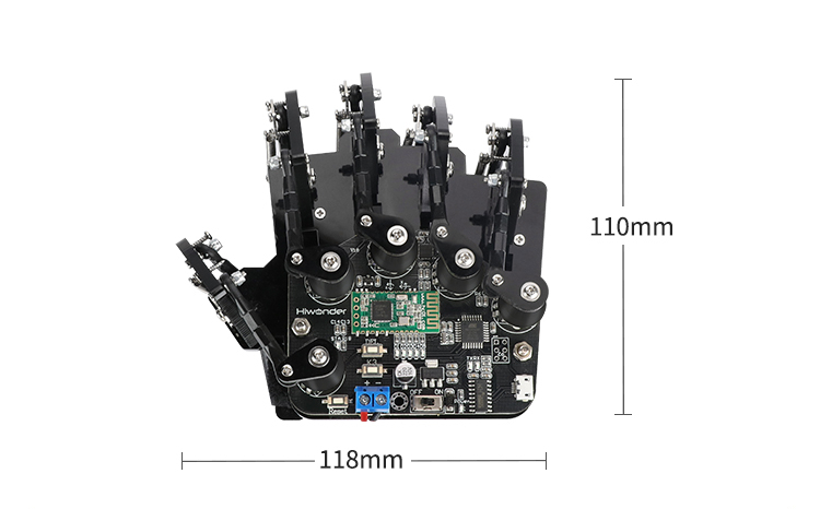 1) Controlled by Motion Sensing Glove: The robotic hand is equipped with a Bluetooth module. Using the gesture glove, users can control the hand's movements in real-time.