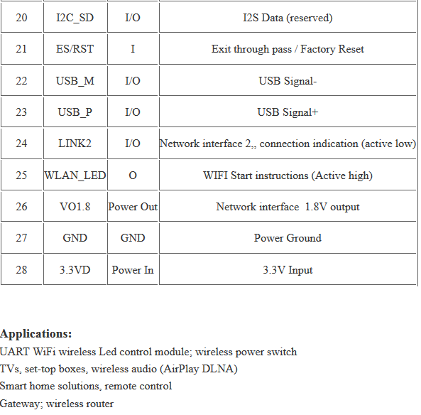 This product is an embedded module based on the universal serial interface network standard,built-in TCP / IP protocol stack, enabling the user serial port, Ethernet, wireless network (wifi) interface between the onversions.Through the HLK-RM10 module, the traditional serial devices do not need to change any configuration,data can be transmitted through the Internet network. Provide a quick solution for the user's serial devices to transfer data via Ethernet