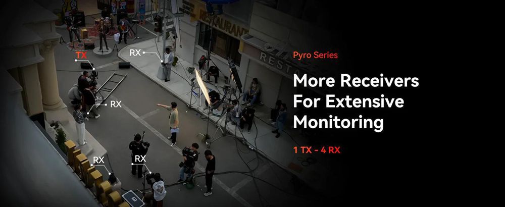 - Pyro S ensures that you capture every moment with clarity and precision, thanks to its advanced capabilities to transmit video seamlessly up to 1,300ft (400m) with an incredibly low latency of just 50ms. Ideal for live events and complex film shoots, Pyro S provides the reliability and performance needed to deliver high-quality content, even over extended distances.