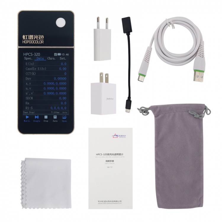 HOPOOCOLOR HPCS-320 380-780nm Lux Meter Handheld Lux Light Meter with 3.5 Inch IPS Touch Screen