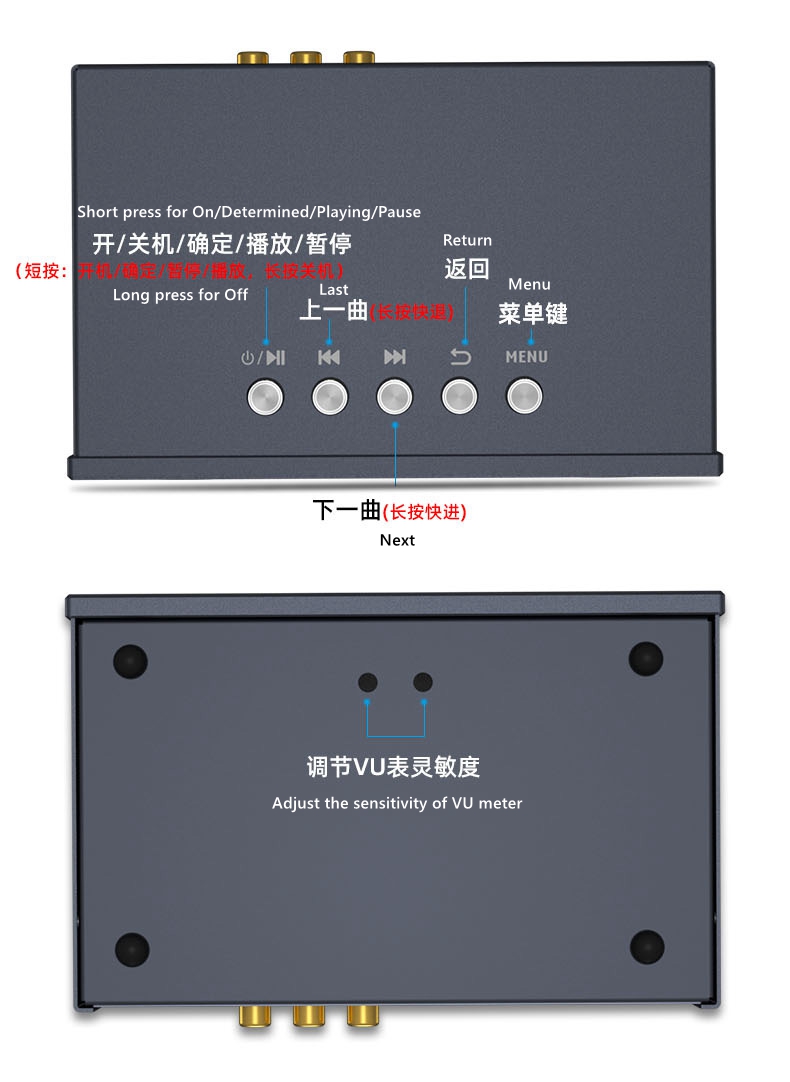 HP-01 Grey High Fidelity Lossless USB Digital Player with Double VU Meter and 2.4inch Display Screen