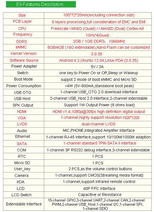 I.MX6Q Mini-PC E9 Cortex-A9 Quad Development Board 2GB DDR3 8GB Flash VGA interface