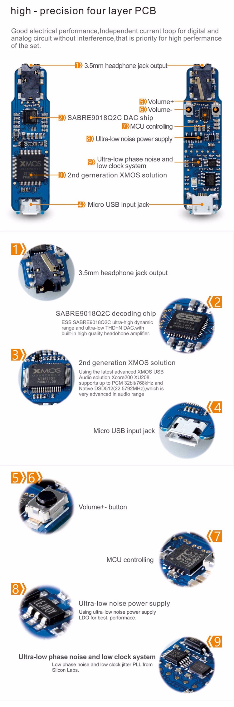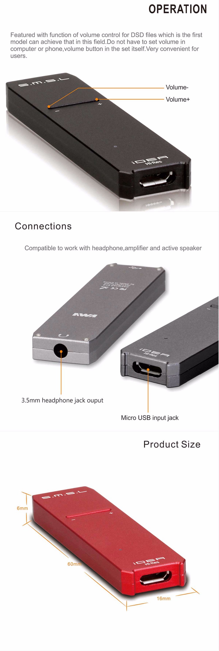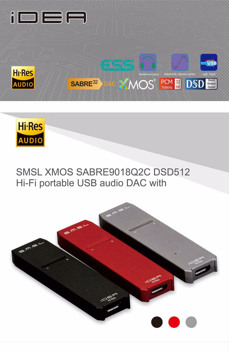IDEA Portable Headphone Amplifier USB DAC Amp SABRE9018Q2C XMOS DSD5123.5mm Headphone Jack Output