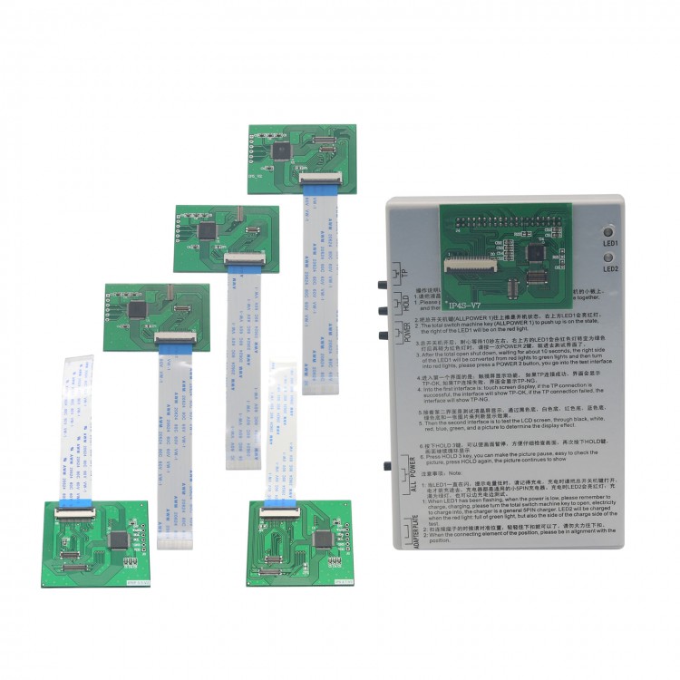 Apple LCD Screen Test Rack Multi-function Full Set for iPhone 5s Product Description: - 7 compose 1 test frame with 6 small plates.Universal LCD Display / Touch Screen Digitizer Tester for iPhone 5s with PCB Boards - Used to test the condition of the touch screen digitizer or LCD display, whether it is good or bad, workable or unworkable - Power adapter and PCB boards are included for facilitating your testing - With LED power indicator - Portable and lightweight design, easy to carry and store - Easy to operate Operation: - Turn on the Power Switch Button - Power source - USB power (not included) input or the attached power adapter (recommend using external power) - Turn on Switch Button - Insert the testing PCB board into the tester, then link the LCD or touch screen digitizer to the PCB board. Remember to link tightly for better testing - After it is well-linked and powered, if the LCD or digitizer is in good condition, clear picture will be displayed on the screen; if it is in bad condition, it will display abnormally - Press Last/Next Buttons to check the previous / next pictures - Press Model Change Button to choose the model you want Note: - If the screen you are testing is not original, please change to OGS model, for example, you are testing a non-original iphone 6, you need change mode to I6_4.7_OGS - Every time you need another model screen, please change to the correct mode firstly, then insert the pcb board, then turn off and restart the machine, linking the screen. - Software Update Button and J1 J2 J3 Buttons are used for internal debugging, which can not be pressed wrongly. - It can't work with iphone 6s and 6s plus. Attention:The test rack only supports the original LCD screen testing. Package included: - 1 x Apple LCD Screen Test Rack Full Set for iPhone 5s