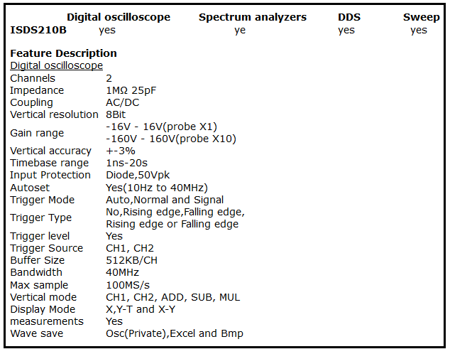 - 1 x isds210B oscilloscope