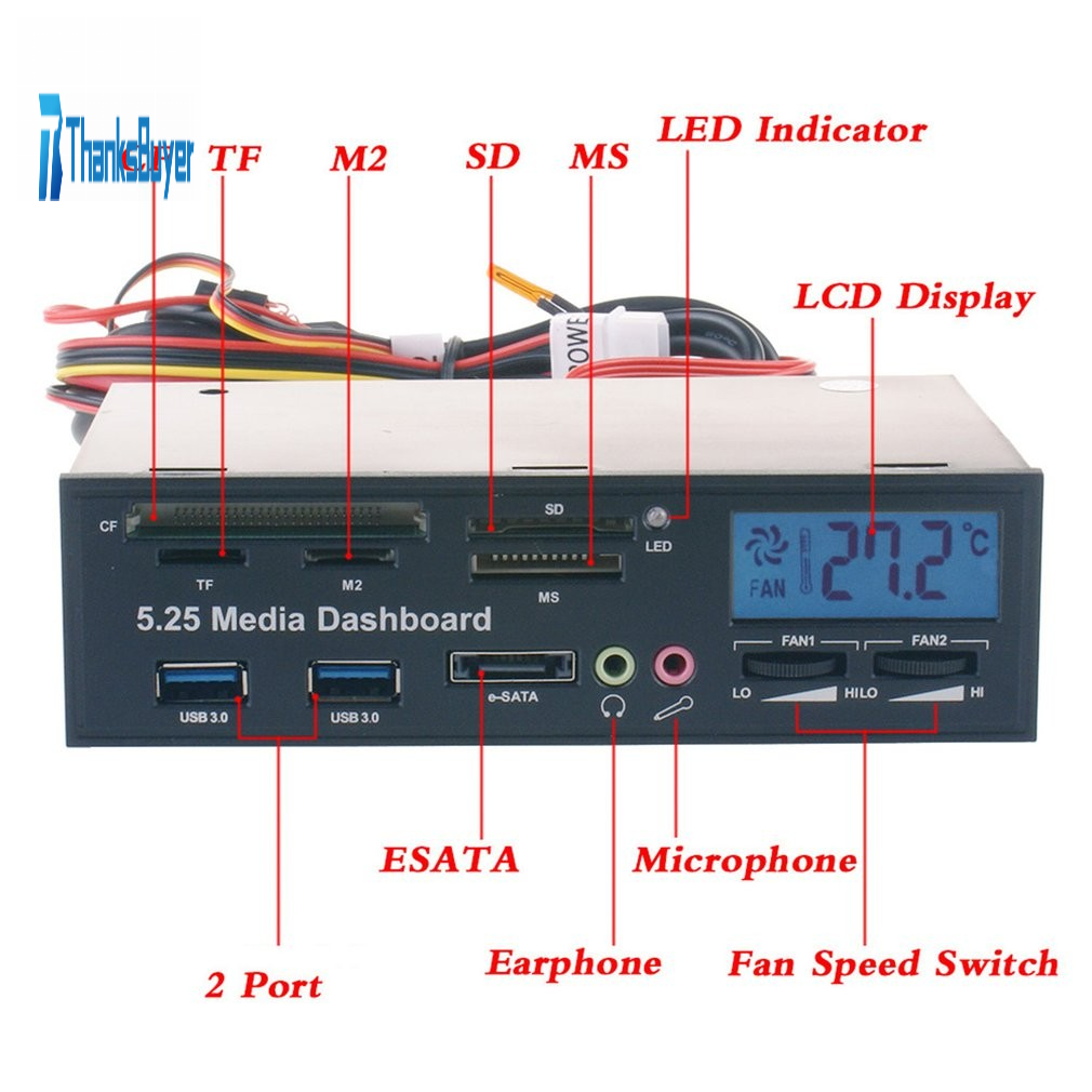 - 5.25'' Media Dashboard Multi-Card Reader USB3.0 Front Optical Drive Panel.