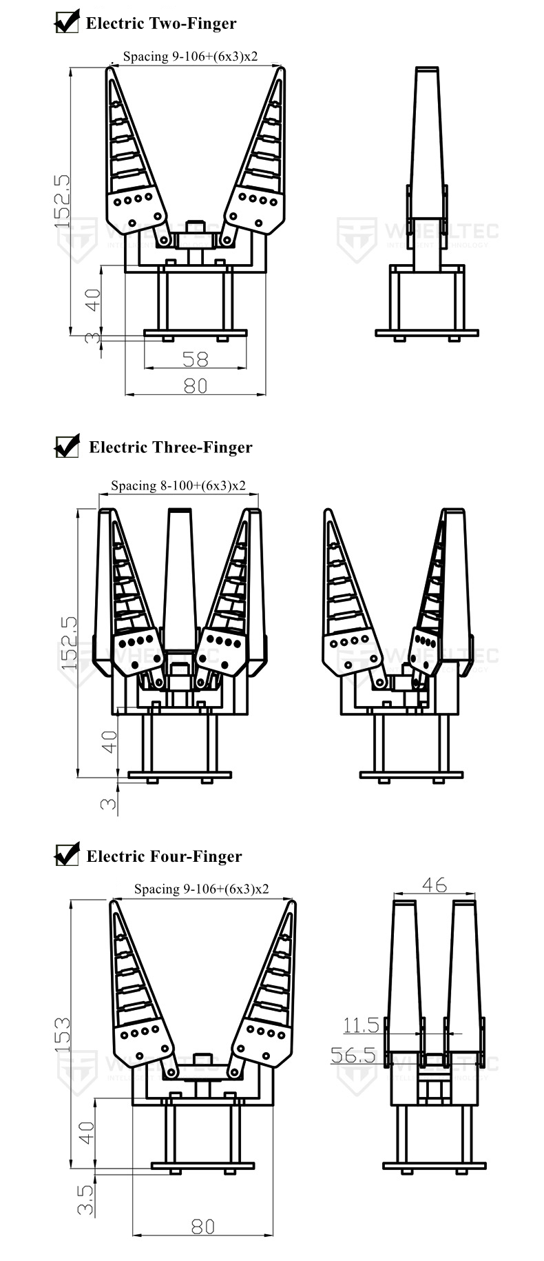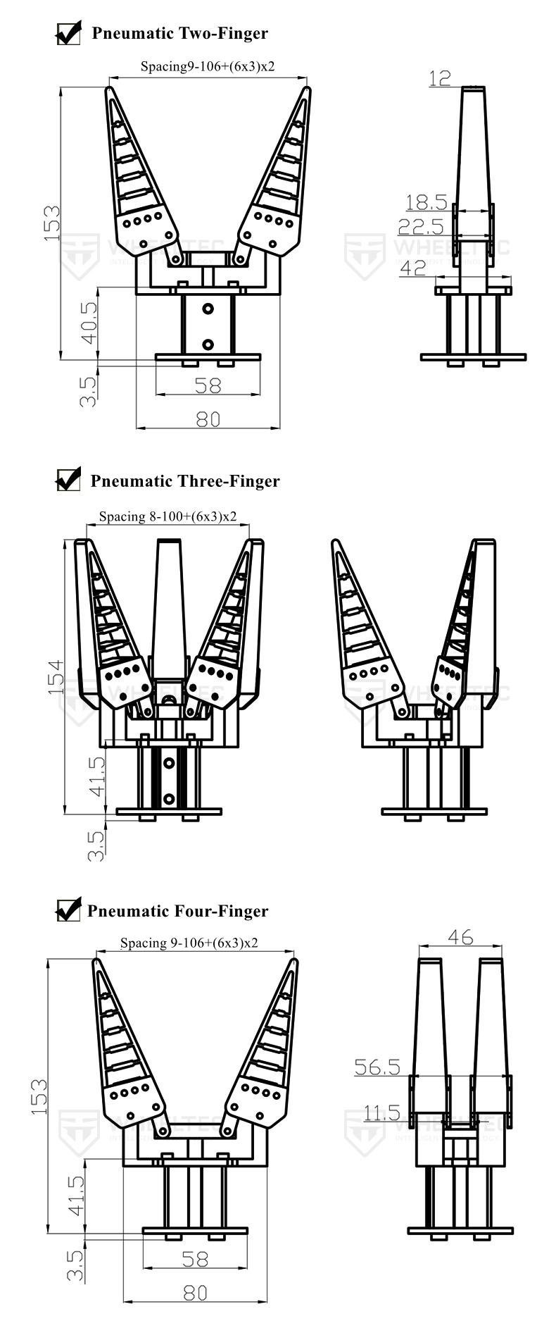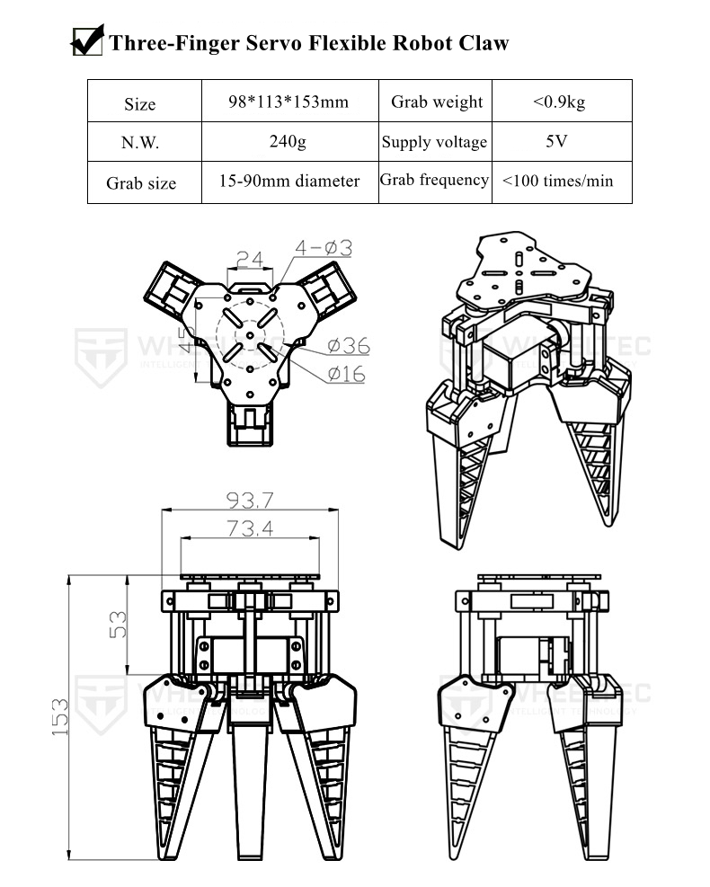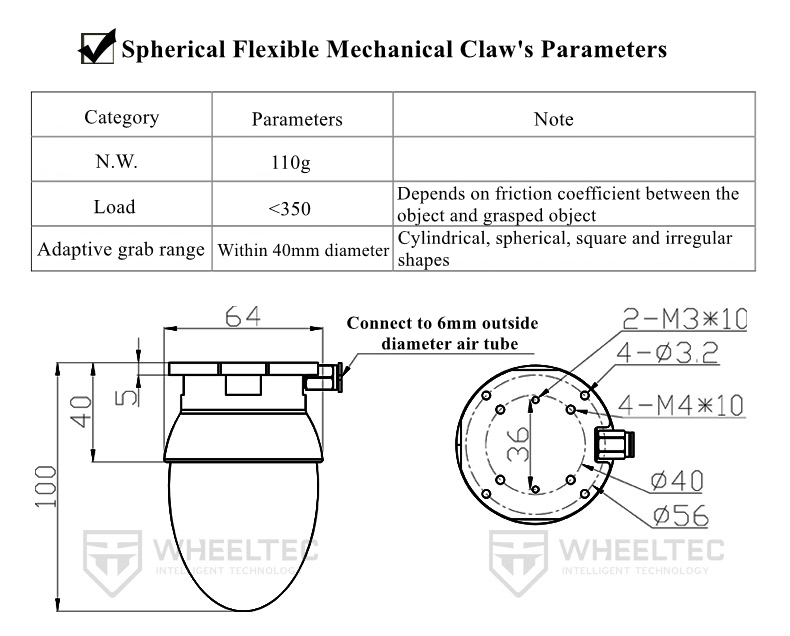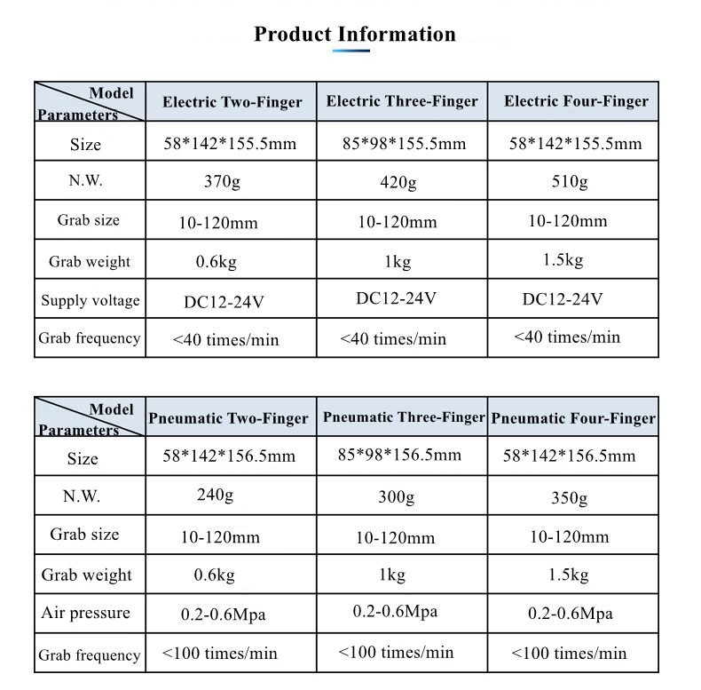 - Flexible finger adjustment: A larger grasping range can be obtained by adjusting the flexible finger