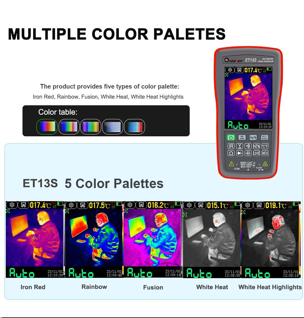 - Multiple color palettes: supports 5 types of color palettes, providing multiple imaging effects, allowing you to choose the most suitable display effect according to your actual needs.