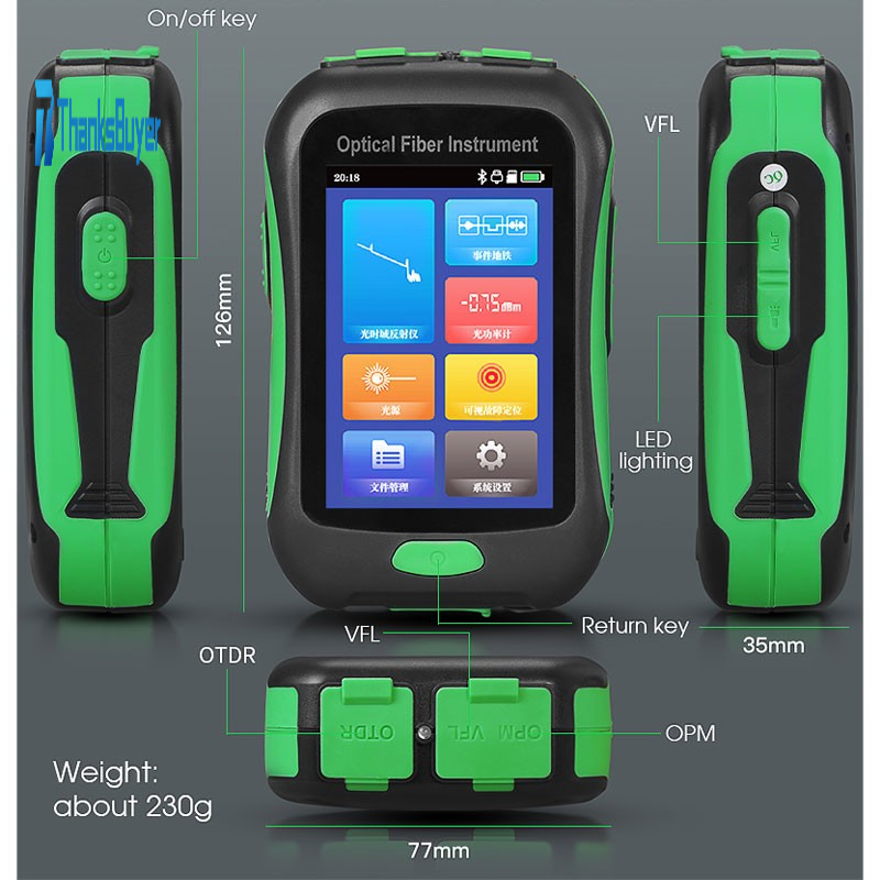 0 - 80KM 1550nm AUA-16A APC Port Rechargeable OTDR Optical Time Domain Reflectometer with 3.5-inch HD Touch Screen