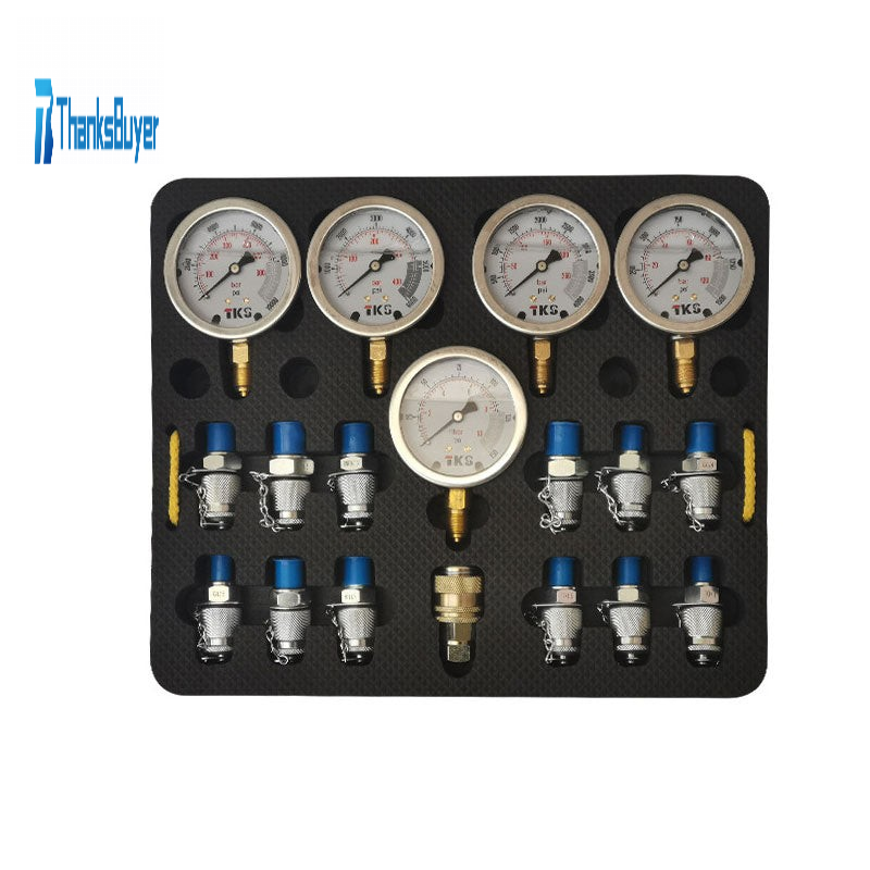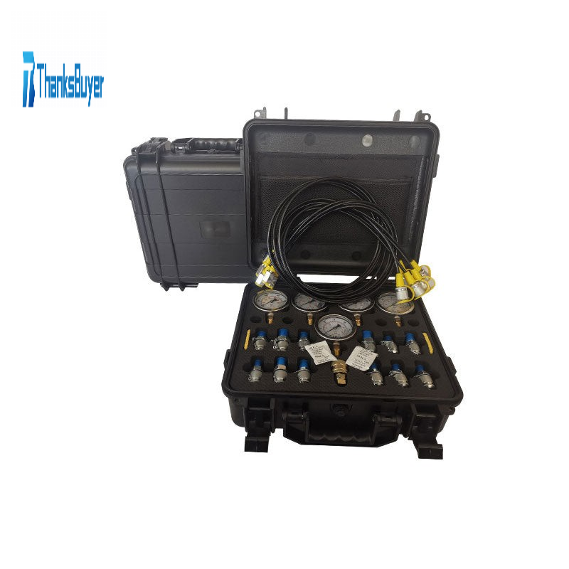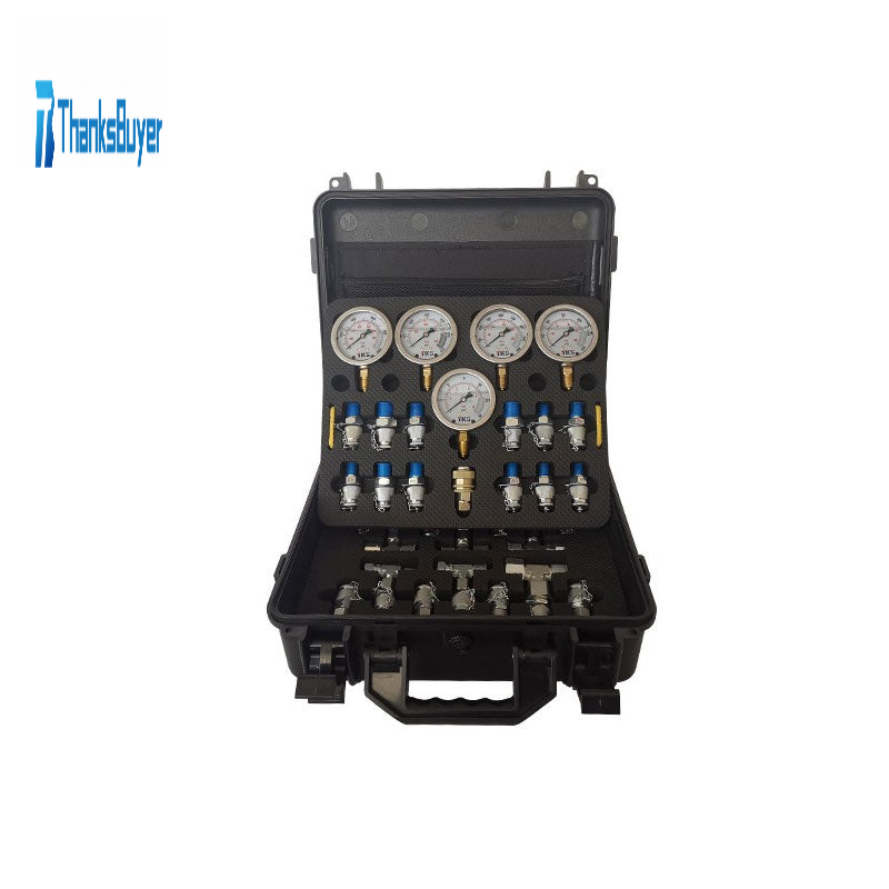 1-60MPA Hydraulic Pressure Tester Kit w/ 5 Gauges 5 Hoses 13 Connectors 14 Tees for Excavators