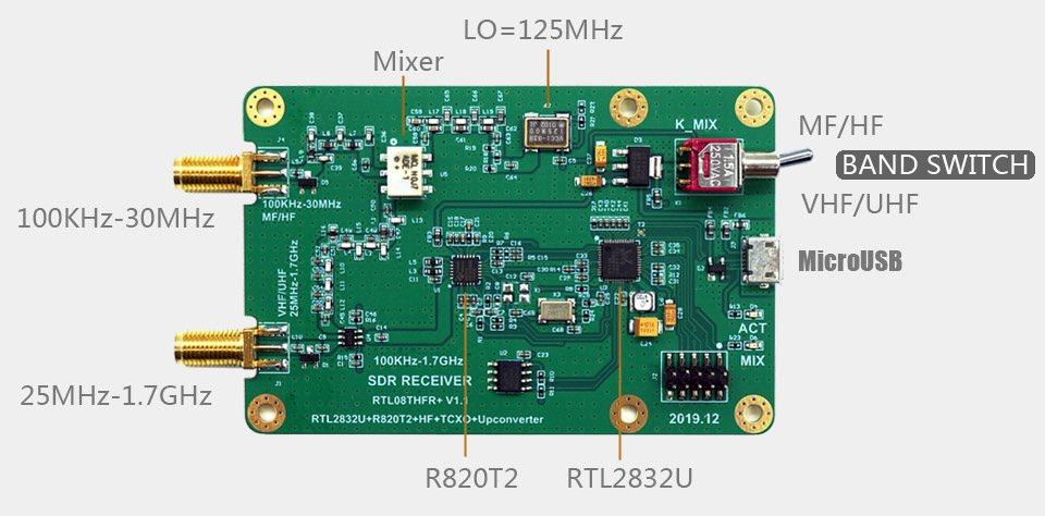 100KHz-1.7GHz RTL08THFR+ SDR Radio Upconverter+1PPM TXCO RTL-SDR Receiver RTL2832U+R820T2 SDR