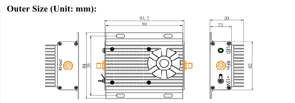 10M-1000MHz 4W broadband RF power amplifier is a broadband power amplifier with P-channel LMDS tube as the final amplifier. It can achieve a small signal linear gain of up to 33dB over a wide band. The saturation output power can reach 4W.