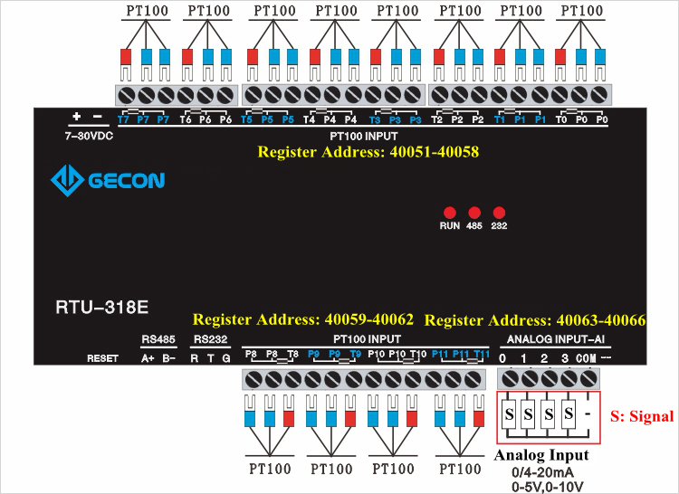 12PT100 + 4AI + RS485 + RS232 Three-Wired Temperature Collector Data Acquisition Module RTU-318E