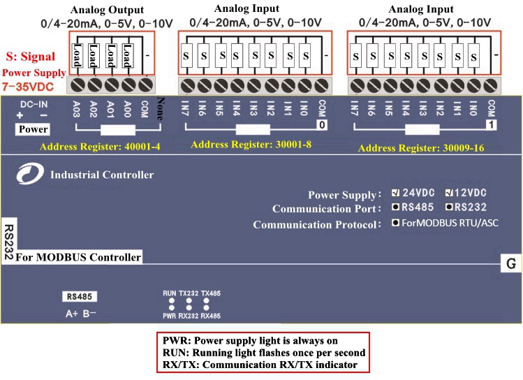 16 Analog Input 4 Analog Output Module For Modbus RTU IO Module RTU-308J 16AI + 4AO + RS485