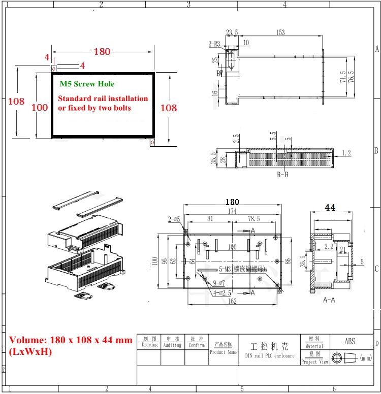 - Dimensions: Volume: 180 x 108 x 44 mm (LxWxH)